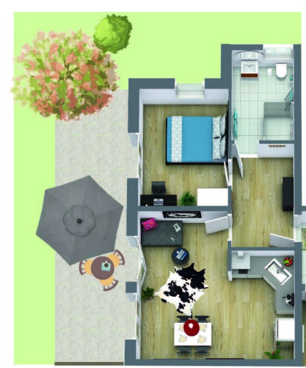 Absolut ruhige, helle zwei Zimmerwohnung am sonnigen Ortsrand.