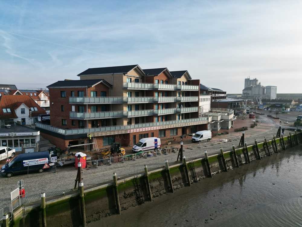 Auf ca. 135 m² bietet die Wohnung modernes Wohnen auf zwei Etagen, das keine Wünsche offen lässt. Die offene Wohnküche mit Anschlüssen für eine Einbauküche ist großzügig und lichtdurchflutet und führt direkt zu einem Balkon, von dem Sie den atemberaubenden Blick auf den Museumshafen und das weite Meer genießen können. Im ersten Obergeschoss befindet sich zudem ein Gäste-Duschbad, das mit modernen Anschlüssen für Waschmaschine und Trockner ausgestattet ist, sowie ein praktischer Abstellraum.