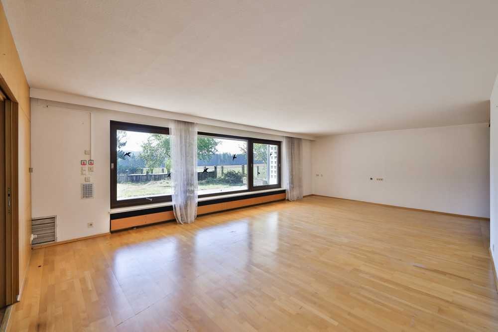 Auf fast 450 m² Wohnfläche bietet die Immobilie viel Wohnfläche verteilt auf Erdgeschoss und Dachgeschoss. Das Untergeschoss bietet ein großzügiges Schwimmbad mit Umkleideraum sowie die typischen Kellerräume.
