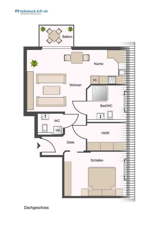 Charmante 2-Zimmer-Wohnung im Neubau-Dachgeschoss, zzgl. Aufzug, Balkon und PKW-Stellplatz