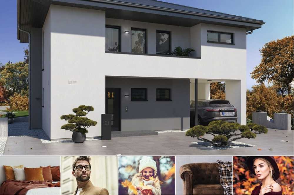Attraktive Architektur und hoher Wohnkomfort vereinen sich bei unserer Stadtvilla 20 zu einer wahrhaft gelungenen Symbiose. Ein Zugang zu den Wohnräumen im Erdgeschoss ist nicht nur durch die Eingangstür, sondern auch direkt über den integrierten Carport möglich, sodass man bei schlechtem Wetter seine Einkäufe trockenen Fußes in den angrenzenden Hauswirtschaftsraum bringen kann. Offen und, dank vieler Glasflächen, sehr hell präsentiert sich der kombinierte Wohn-Koch-Essbereich. Im Obergeschoss trennt eine geräumige, zentral gelegene Galerie den Elternbereich mit Schlafzimmer und angeschlossenem großem Badezimmer von den beiden Kinderzimmern, zu denen ein weiteres Badezimmer mit Dusche und WC gehört. Von der Galerie gelangt man auch direkt in die einladende Loggia. Eine weitere, über dem Vordereingang gelegene und von den beiden Badezimmern zugängliche Loggia, bietet bei Wind und Wetter die Möglichkeit, frische Luft zu schnappen und ungestört zu relaxen.