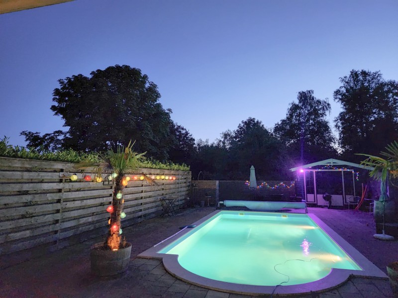 Freistehendes, altersgerechtes Haus mit umgebauter Doppelgarage (87 m²), die über eine feste Treppe ins Obergeschoss führt; dadurch sind Mehrgenerationenwohnen, B&B und/oder ein Büro zu Hause ebenfalls möglich. Darüber hinaus verfügt das Haus über eine Überdachung, ein Gartenhaus und einen Pool von etwa 50 bis 55 m².