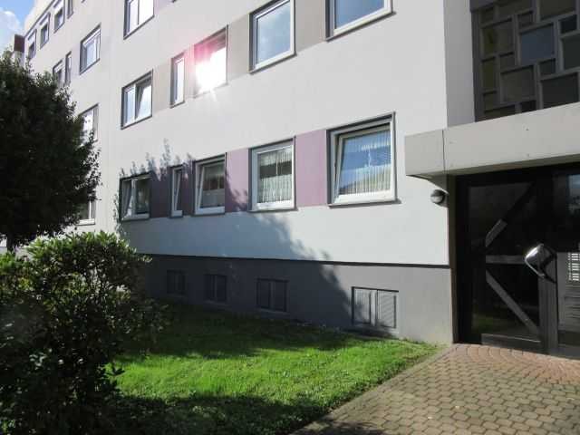 Gepflegte, 4-Zimmer-ETW, Hochparterre , 3 geschossiges Wohnhaus mit 16 WE (WE-Gemeinschaft mit 68 Einheiten, verteilt auf 4 Hauseingänge), Bj. 1968, Flachdach, Vollkeller, Treppenhaus: Offene Konstruktion, Laufbalken aus Beton mit Kunststeinstufen. Außen: Verputztes und gestrichenes Mauerwerk.