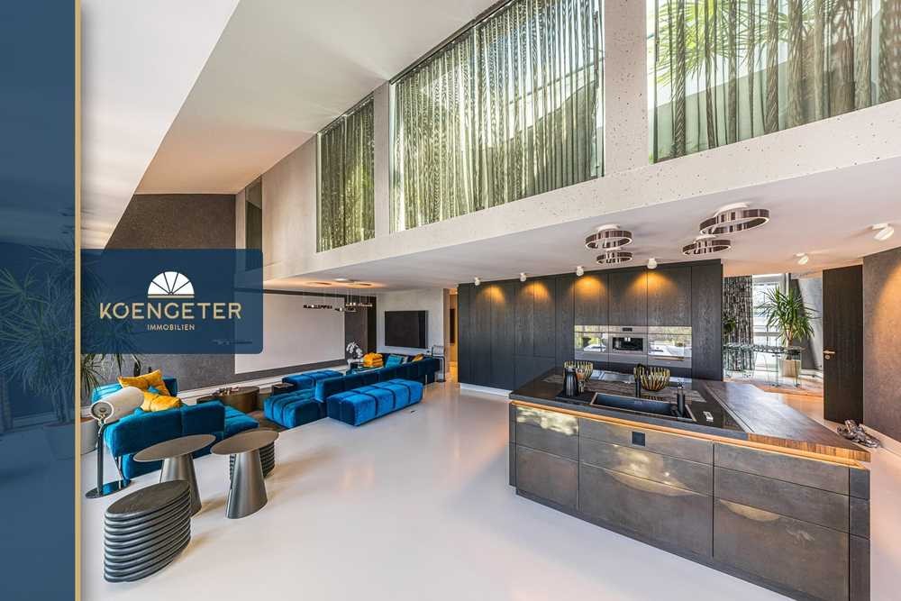 Das Herzstück der unteren Ebene bildet der großzügige und hochwertige Wohn-, Koch- und Essbereich, der sich auf knapp 100 m² erstreckt.