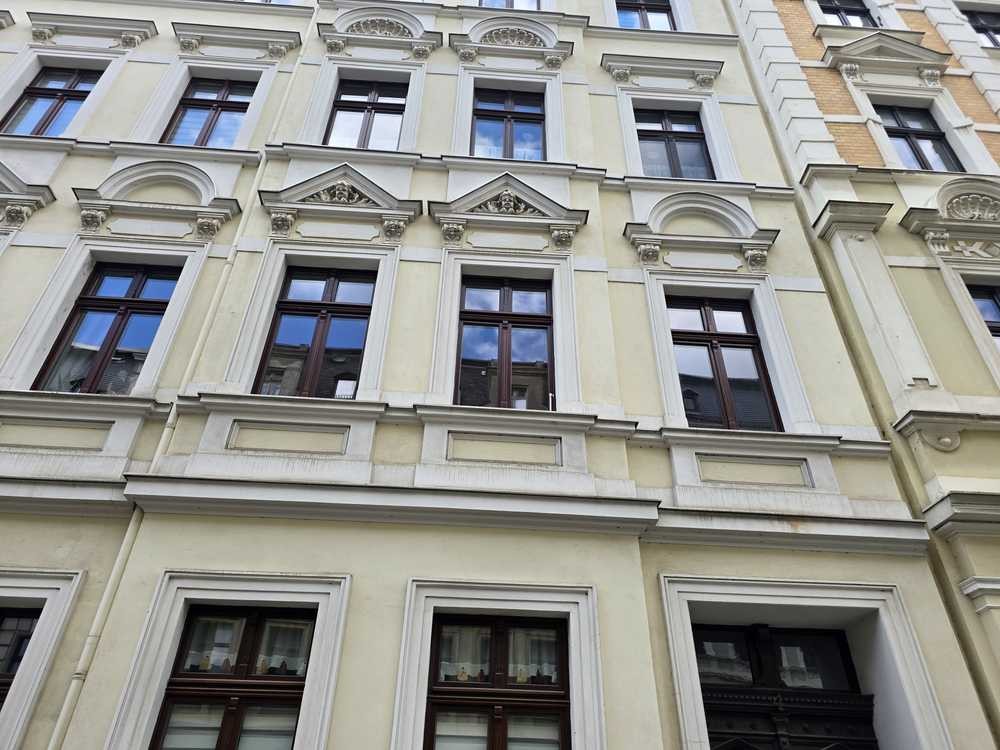 Die 55,62 qm große Zweiraumwohnung befindet sich im 1.OG eines vierstöckigen denkmalgeschützter Mehrfamilienhauses. In den Jahren 1996-1996 erfolgte eine Modernisierung, im Zuge welcher neue Fenster und Innentüren verbaut wurden. Das Highlight der Wohnung ist ein französischer Balkon. Zu der Wohnung gehören eine Abstellkammer und ein Kellerabteil.