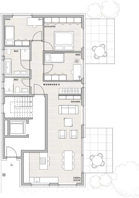 Diese hochwertig ausgestattete Wohnung auf der Südseite bietet ein lichtdurchflutetes Ambiente und einen offenen, großzügigen Wohn-Ess-Küchenbereich. Zwei moderne Bäder bieten zusätzlichen Komfort. Ein besonderes Highlight ist der großzügige Garten, der sich über die gesamte Breite des Hauses erstreckt. Perfekt für alle, die urbanes Leben mit hoher Wohnqualität und viel Freiraum verbinden möchten.