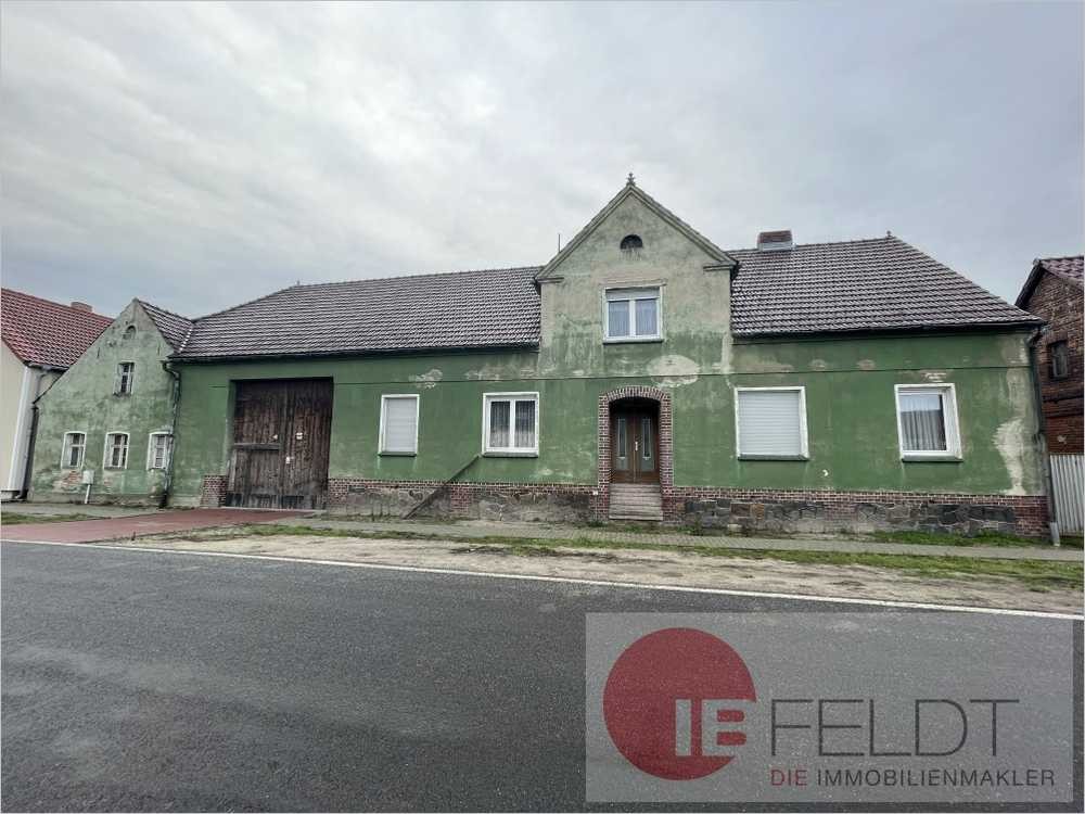 Das Wohnhaus, mit einer geschätzten Wohnfläche von etwa 158 m², und ein angrenzendes Nebengebäude erscheinen renovierungsbedürftig.