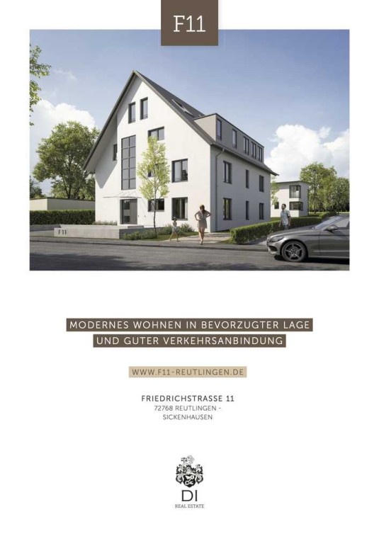 Hierbei handelt es sich um die Wohnung 7: 3-Zimmer-Maisonette-Wohnung mit Terrasse in Südausrichtung und ca. 108 m² Wohnfläche. Die Wohnung befindet sich im modernen Doppelhaus (B) - mehr unter www.f11-reutlingen.de.