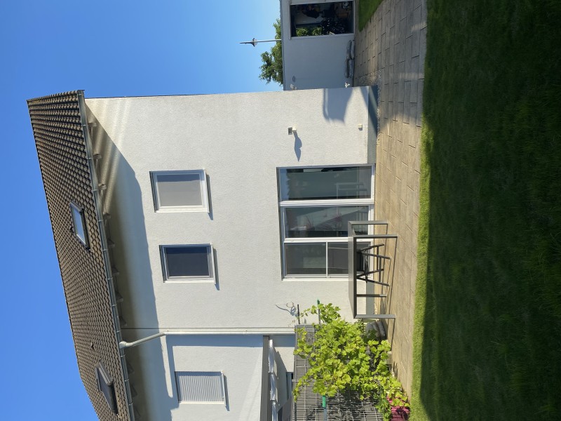 Der Blick in den kleinen gepflegten Garten bietet sich sowohl über die große Fensterfront im Wohnzimmer als auch von der geräumigen Terrasse an. Der Hof sowie der Garten wurden erst kürzlich neu gepflastert. Ein eigener Brunnen, eine Bewässerungsanlage erleichtern die Pflege. Eine Garage ist im Preis inklusive.