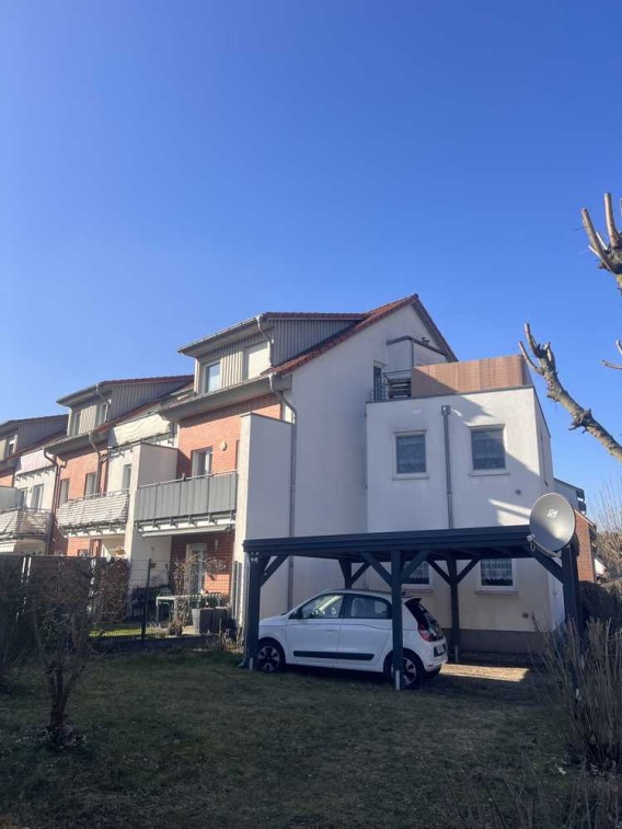 Zur Wohnung gehört ebenfalls ein eigener und auch grundbuchlich mittels Grunddienstbarkeit abgesicherter Kfz-Stellplatz mit der Nummer 7 direkt seitlich neben dem Haus.