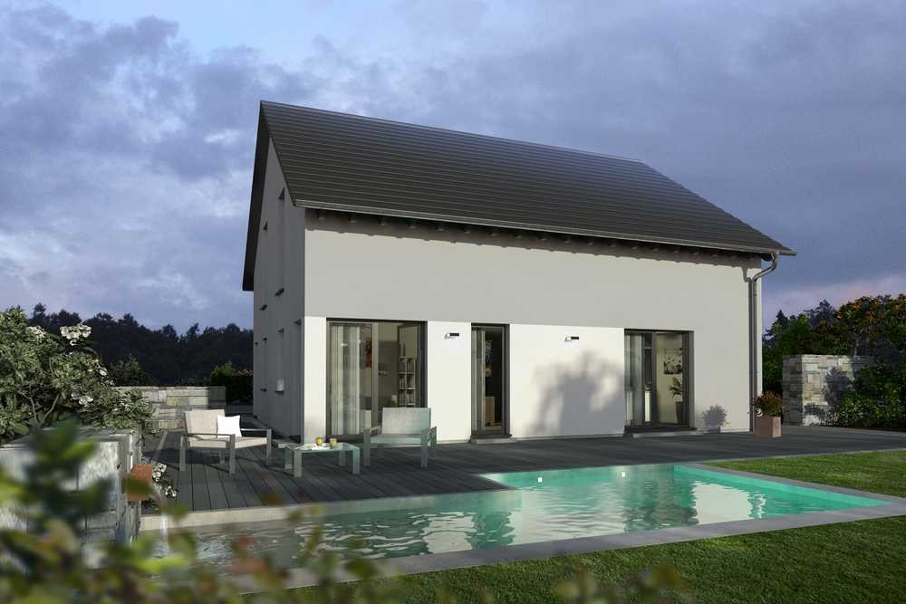 Das Einfamilienhaus Design 16 besticht auf zwei Etagen durch sein großes Platzangebot, die clevere Raumaufteilung und exklusive Ausstattungsdetails. Vom Eingang im Erdgeschoss führt ein langer Flur geradeaus in den gegenüber liegenden Essbereich, der zu beiden Seiten offen ist und in den großen Wohnbereich und in die Küche übergeht. So findet das Tageslicht, das durch die zahlreichen Fenster und Glastüren dringt, seinen Weg bis in den letzten Winkel.
