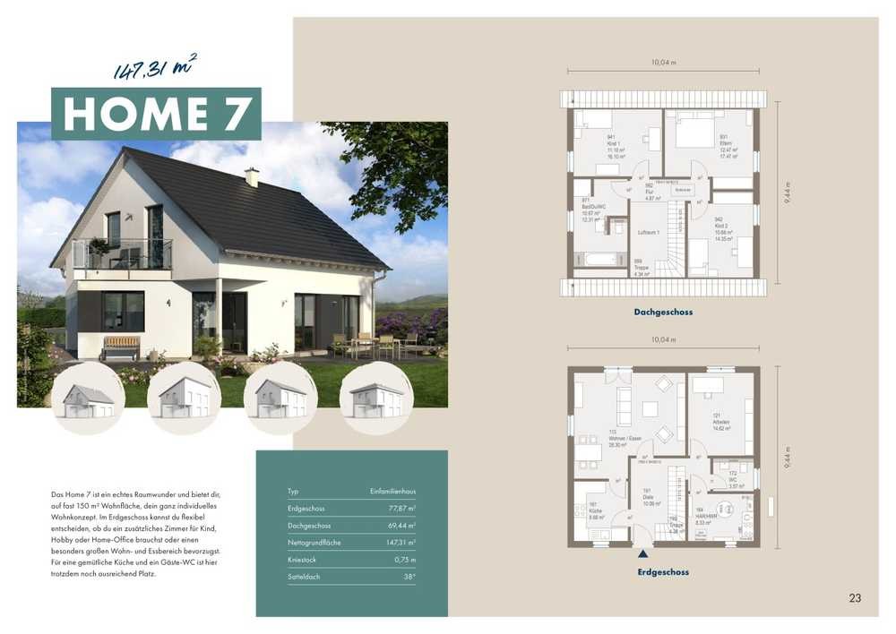 Wer sich mit unserem Home 7 den Traum vom eigenen Haus erfüllt, entscheidet sich richtig. Schon beim Betreten des weitläufigen Wohn- und Essbereichs oder der geräumigen Küche zeigen sich die Vorteile dieses Hauses: Vielfältige Gestaltungsmöglichkeiten und das gewisse Etwas, welches Ihnen nachhaltig ein angenehmes Wohnen bescheren wird.