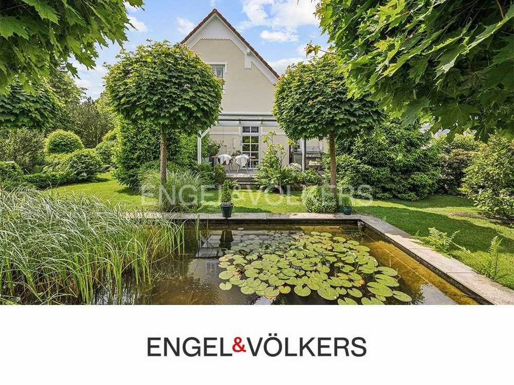 Draußen vervollkommnet - neben zwei Doppelgaragen mit elektrischen Rolltoren, gepflastertem Vorplatz und kleinem Holzhaus – ein liebevoll gestaltetes, ca. 940 m² großes Grundstück das einzigartige Liebhaberstück! Hier, im nahezu blickdicht angelegten immergrünen Garten, haben Sie die Wahl zwischen drei verschiedenen Terrassen mit insgesamt ca. 76 m² Grundfläche, von denen die größte mit klarem Glas überdacht ist und über eine Außenküche verfügt. So können Sie nicht nur rund ums Haus der Sonne folgen, sondern bei Bedarf auch stundenlang dem entspannenden Plätschern des Wasserlaufs im idyllischen Gartenteich lauschen.