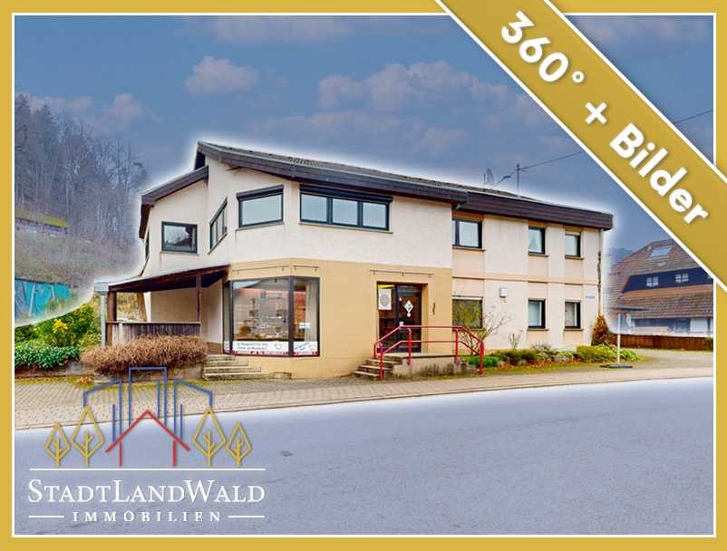 Einfamilienhaus mit Gewerbe | 6-ZKB + Gäste-WC | 3 Etagen (UG/EG/OG) | ca. 372 m² Wohn- und Gewerbefläche | ca. 177m² Wohnfläche im OG | ca. 195m² Gewerbefläche im EG und UG | ca. 53m² Nutzfläche im UG | 2 Garagen + mehrere Stellplätze | Grundstück mit eigenem Bachlauf | zentrale Lage in Schönau