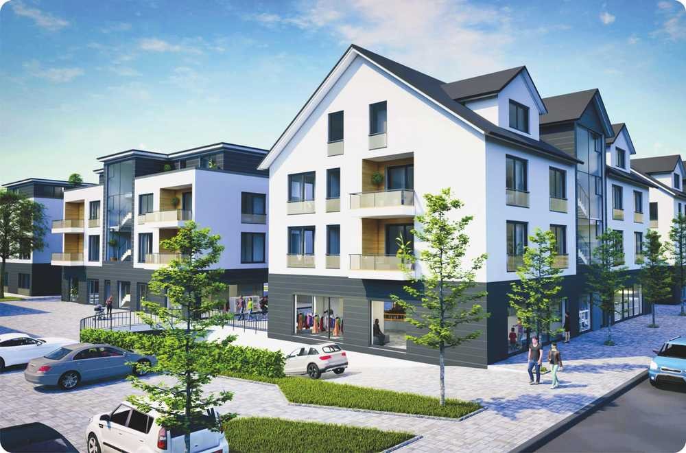 Mitten im Zentrum von Neunkirchen entsteht eine neu gestaltete Ortsmitte mit insgesamt fünf Häusern. Die Ladenlokale im Erdgeschoss und die darüberliegenden Wohnungen im Ober- und Dachgeschoss liegen um den attraktiv gestalteten Rathausplatz, der zum Verweilen einlädt. Alle Häuser verfügen über einen Personenaufzug, von dem Sie jede Etage aus der Tiefgarage bequem und barrierefrei erreichen können.