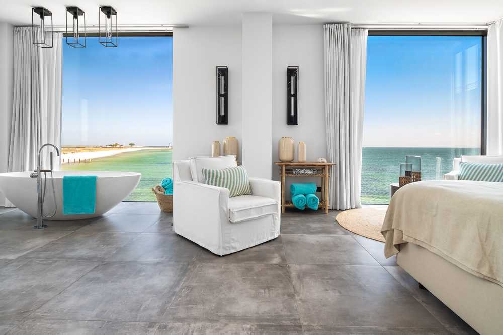 Großzügige Glasfronten, die die Hausecken umschließen, tauchen die Räume in ein faszinierendes Licht und lassen den Blick aufs Meer zum Teil des Interieurs werden.