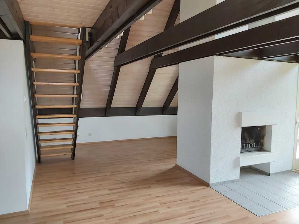 Auf ca. 115 m² Wohnfläche erwarten Sie vier helle Zimmer, ein großzügiger Wohnbereich mit Loftcharakter, ein gemütlicher Kamin für entspannte Abende und ein weiter Blick ins Grüne. Die Wohnung erstreckt sich über zwei Ebenen und bietet ein besonderes Wohngefühl – luftig, individuell und voller Charme.