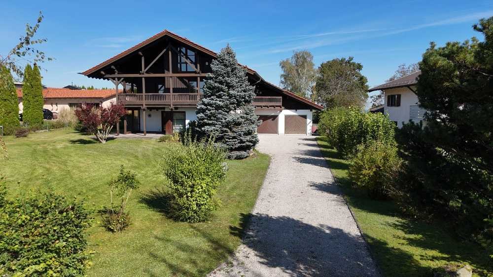 Im Wohnzimmer ist ein sehr schöner Kachelofen vorhanden, der aufgrund einer Anbindung an die Öl-Zentralheizung parallel zur Gebäudebeheizung mitgenutzt werden kann. Aus dem großzügigen Wohn- und Essbereich erreicht man über eine sehr schöne überdachte Terrasse den sehr großen Gartenbereich mit gepflegtem Baum- und Strauchbestand. Der Gartenbereich lässt bei der Grundstücksgröße von 1973 m² keine Wünsche offen. Von der südseitigen Loggiaförmigen Balkonkonstruktion im Obergeschoss kann man den Blick bis in die Berge schweifen lassen. Weitere Balkone an der Ost- und Nordseite bieten zusätzliche Rückzugsorte. lm Keller ist neben Heizkeller, großzügigem Waschraum sowie Lagerkellerraum insbesondere ein großer beheizter Hobbyraum vorhanden. Über eine repräsentative Auffahrt gelangt man bequem zur geräumigen Doppelgarage. lm Dachgeschoss steht neben dem dortigen Zimmer noch eine erhebliche Fläche als Ausbaureserve zur Verfügung. Des Weiteren verfügt das Haus über eine abtrennbare Einliegerwohnung mit zusätzlichem separaten Eingang, die beispielsweise für erwachsene Kinder, Au-Pair, Großeltern oder als auch als Bibliothek oder Arbeitsbereich genutzt werden kann.