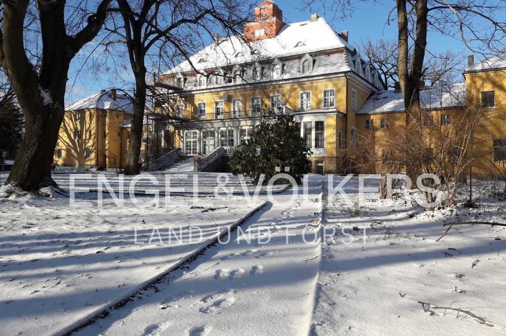 Das Hauptgebäude erstreckt sich über drei großzügige Etagen mit jeweils ca. 300 m2. Ergänzt wird es durch Zwischen- und Eckgebäude, die teils noch originale Bausubstanz des ehemaligen Ritterguts aufweisen. Historische Details wie kunstvolle Holzarbeiten, Schnitzereien und die Dachstube mit den Resten eines ehemaligen Planetariums verleihen dem Schloss eine einzigartige Ausstrahlung. Der großzügige Park mit Eichen, Kastanien und Buchen, einer repräsentative Freitreppe sowie der Terrasse unterstreichen den besonderen Charakter des Anwesens.