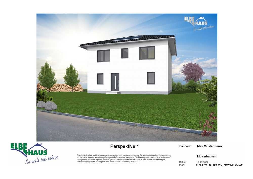 Dieses innovative Elbe-Haus® wird in massiver Bauweise von qualifiziertem Fachpersonal errichtet. Wir planen und projektieren nach Ihren Vorstellungen und Wünschen und somit ist wirklich jedes Haus einzigartig. Beachten Sie bitte, dass das abgebildete Haus lediglich ein Bebauungsbeispiel ist. Das Grundstück kann unter Berücksichtigung der örtlichen Bauvorschriften mit Ihrem Wunschhaus von Elbe-Haus® errichtet werden.