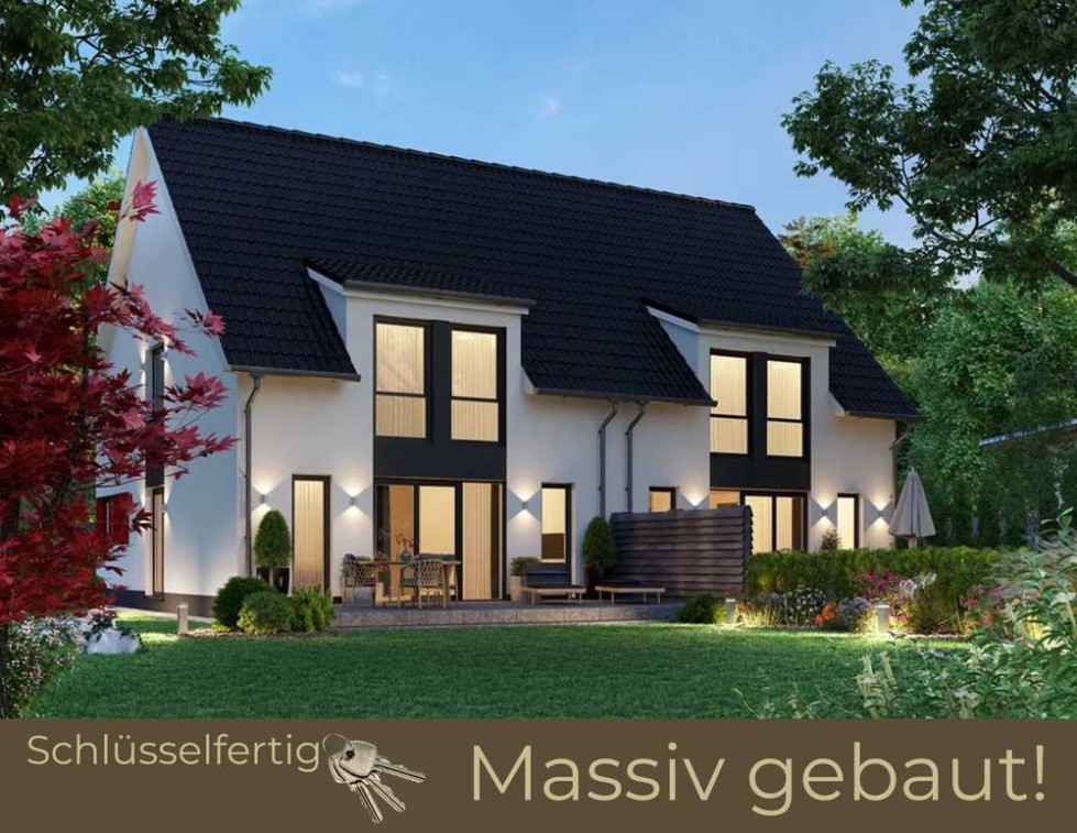 Ein Grundriss, viele Möglichkeiten – so lautet das Motto unseres Doppelhauses mit Dachgaube, das wir gerne für Sie an Ihrem Traumstandort bauen. Das heißt: Sie können sich von unseren Ideen inspirieren lassen, gerne aber auch Ihren eigenen Weg in puncto Ausstattung gehen. Von der Fassade über die Innenraumgestaltung bis hin zu Eingangstür oder Badezimmerarmaturen bestimmen Sie, wo es langgeht. Hierzu stehen wir Ihnen mit Rat und Tat zur Seite und haben ein umfassendes Produktportfolio namhafter Hersteller in petto. Sie haben schon ganz konkrete Vorstellungen? Sehr gern! Wir finden auch Lösungen abseits unseres Ideen-Pools. Kontaktieren Sie uns für ein Beratungsgespräch!