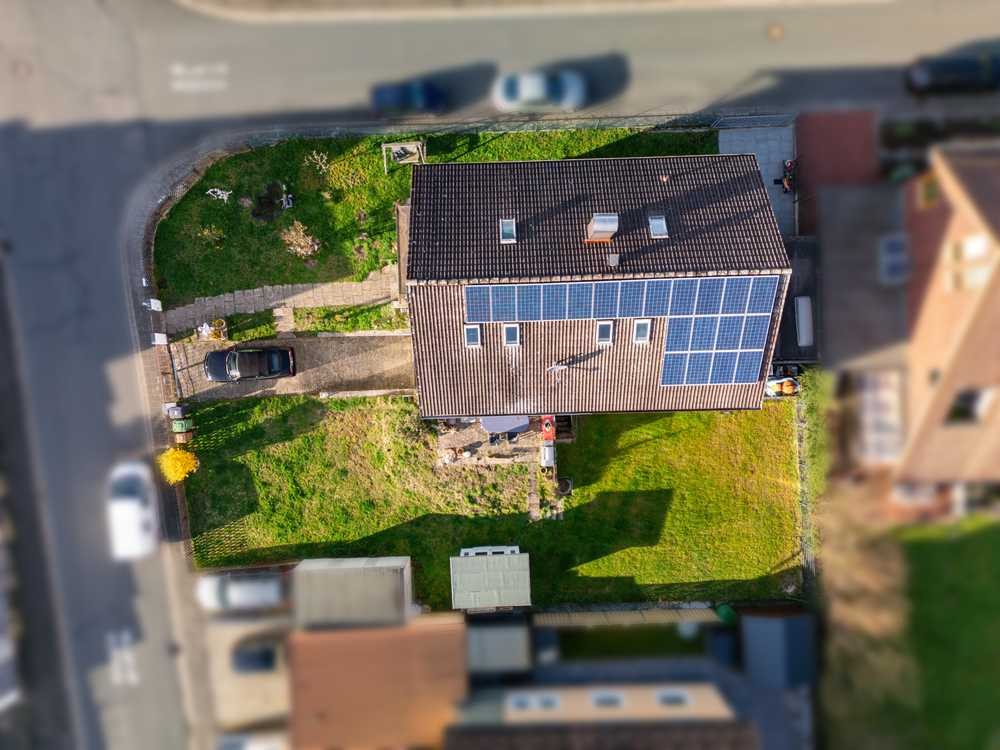 Das Haus wird über eine PV-Anlage mit Strom versorgt. 50 % vom erzeugten Strom werden in das öffentliche Netz eingespeist.