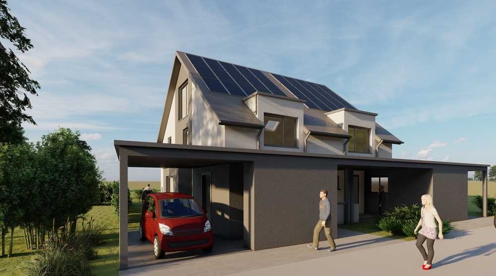 Die familienfreundliche Doppelhaushälfte mit einer Wohnfläche von rund 125 qm wird als Effizienzhaus 40 projektiert.