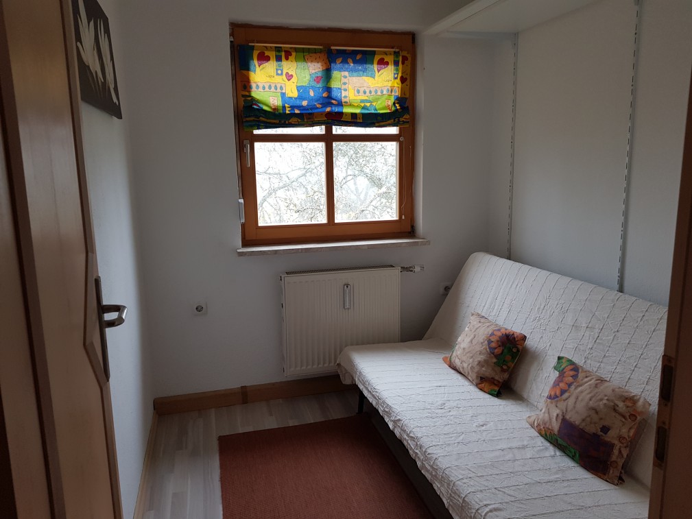 Obergeschoß: 1 Schlafraum, 1 Abstellraum (oder als kleines Kinderzimmer nutzbar), Wohnzimmer, Küche, Bad, Südbalkon