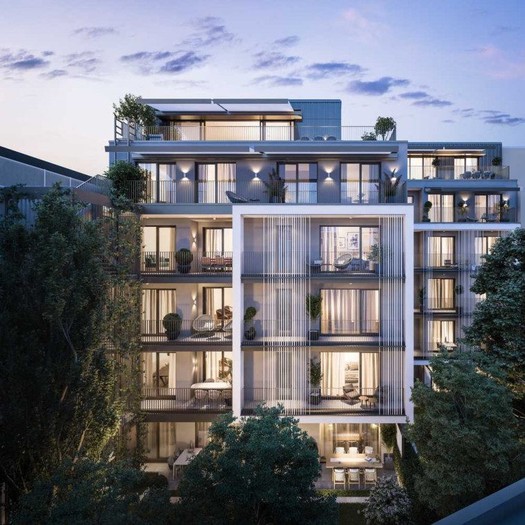 Freuen Sie sich auf exklusive Eigentumswohnungen mit 2 bis 6 Zimmern, die mit einem repräsentativen Eingangsbereich, Terrassen, Balkonen, Loggien und Dachterrassen, sowie größtenteils bodentiefen Fenstern ausgestattet sind. Die eindrucksvoll gestaltete Fassade, reizvolle Material- und Farbkombinationen, ein Smart Home System, elektrische Rollläden, Tiefgaragenstellplätze mit Ladestationen und eine Paketstation runden das Angebot ab.