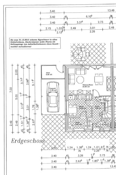 dezentrale Lüftungsanlage mit Wärmerückgewinnung mit frischer Luft versorgt. Anschlüsse für Strom, Wasser, Erdgas und Telefon(Telekom und Kabelfernsehen). Im gesamten Haus wurde Netzwerk- und SAT-Kabel verlegt. Eine SAT-Schüssel ist vorhanden. Einbauküche inkl. Geräte(Geschirrspüler, Kühlschrank, Backofen, Herd mit Ceranplatte). Die Fenster sind mit 3-Scheiben-Verglasung und drei Dichtungsebenen und zusätzlichen Schließblechen versehen. Diese Kombination bietet eine hohe Energieeinsparung.