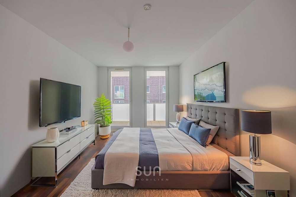 Die Wohnung überzeugt durch einen durchdachten Grundriss: Zwei helle Schlafzimmer, ein stilvolles Bad sowie ein zusätzliches Gäste-WC sorgen für hohen Wohnkomfort.