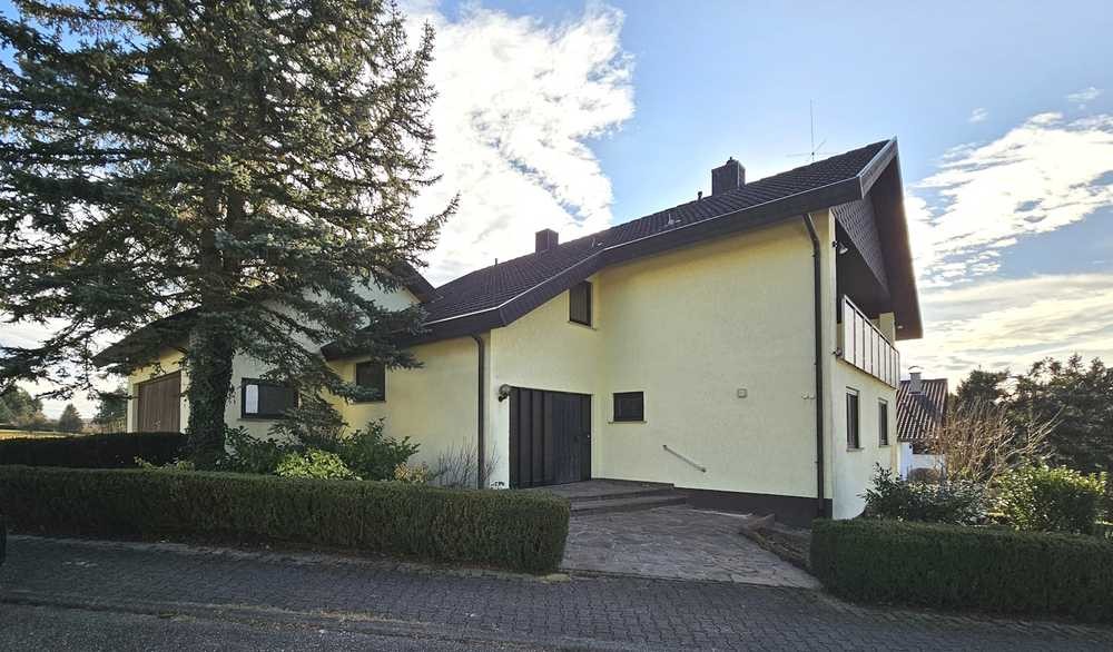 Solide Massivbauweise. Gute Substanz. 202 m² Wohnfläche im Erd- und Dachgeschoß; ca. 60 m² im Souterrain (zuletzt als Praxis genutzt). Terrasse im Erdgeschoß mit unverbautem Blick auf Wiesen und Felder. Loggia im Dachgeschoß mit Panoramablick. Praxis / Büroräume im Souterrain mit separatem Zugang. Doppelgarage mit Zugang zum Haus.