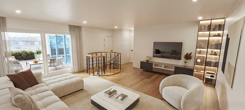 Stellen Sie sich vor, wie es sich anfühlt, morgens von Sonnenlicht geweckt zu werden, das durch die hohen Fenster Ihrer lichtdurchfluteten Galerie fällt – und wie Sie Ihren Kaffee auf einer großzügigen Dachterrasse genießen, während Ihnen eine sanfte Brise ins Gesicht weht.