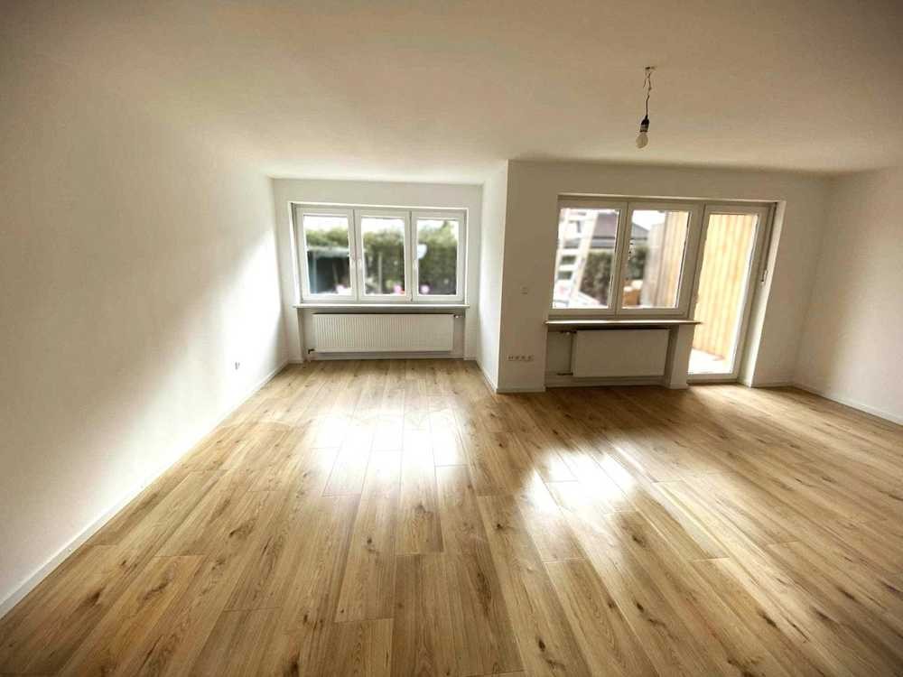 Über den gepflasterten Vorgarten, welcher zeitgleich als Kfz-Stellplatz dient, erreichen Sie den überdachten Hauseingang. Im Hausinneren werden Sie von einer kleinen Diele mit Platz für eine Garderobe begrüßt, welche Sie linker Hand in das Gäste-WC führt. Gegenüber befindet sich die mit großen und hellen Fliesen ausgestattete Küche, welche Platz für eine Essecke bietet. Am Ende des Treppenhauses erreichen Sie das ausladende Wohn- und Esszimmer. Die großen Fenster sorgen für ein hohes Maß an Sonnenlicht und schaffen in Verbindung mit dem modernen Boden in Holzoptik eine angenehme und wohlige Atmosphäre. Von hier aus gelangen Sie auch auf die Terrasse und in den Garten im hinteren Bereich des Hauses.
