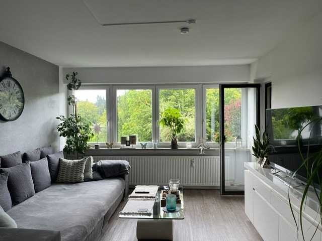 Die Wohnung ist durch die großen Fensterfronten sehr hell, toller Blick ins Grüne!