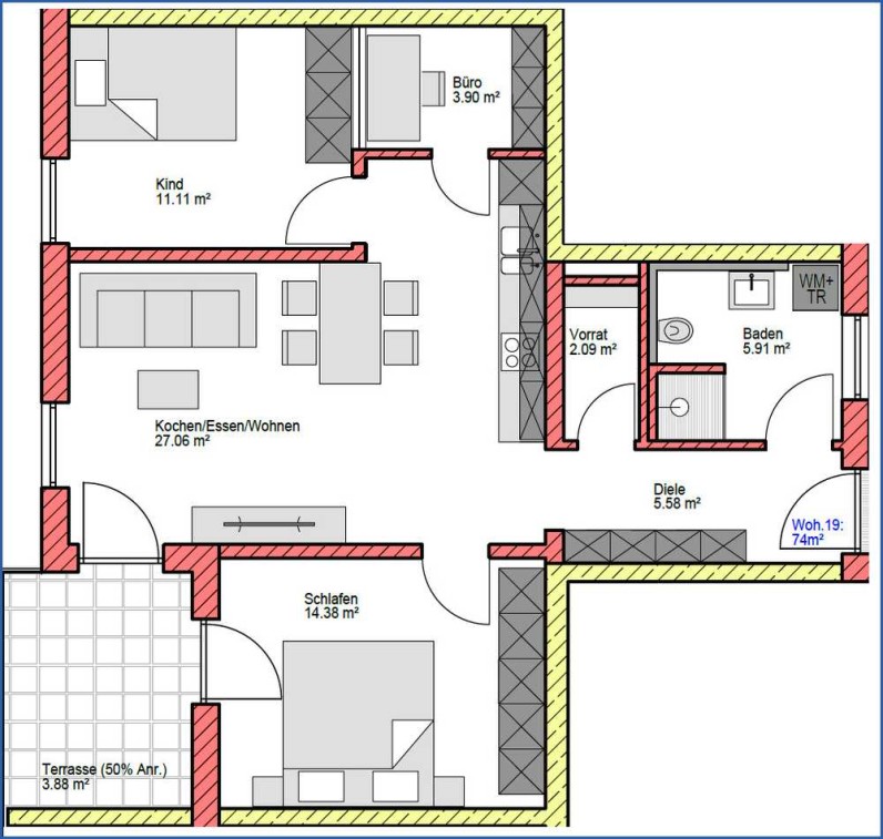 20 Wohneinheiten mit ca. 50 -134 m² sowie mit moderner, barrierefreier Gestaltung entstehen in den Obergeschossen.