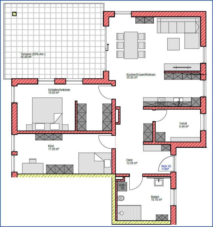20 Wohneinheiten mit ca. 50 -134 m² sowie mit moderner, barrierefreier Gestaltung entstehen in den Obergeschossen.