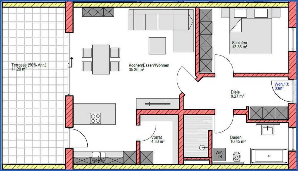 20 Wohneinheiten mit ca. 50 -134 m² sowie mit moderner, barrierefreier Gestaltung entstehen in den Obergeschossen.