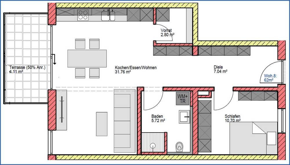 20 Wohneinheiten mit ca. 50 -134 m² sowie mit moderner, barrierefreier Gestaltung entstehen in den Obergeschossen.