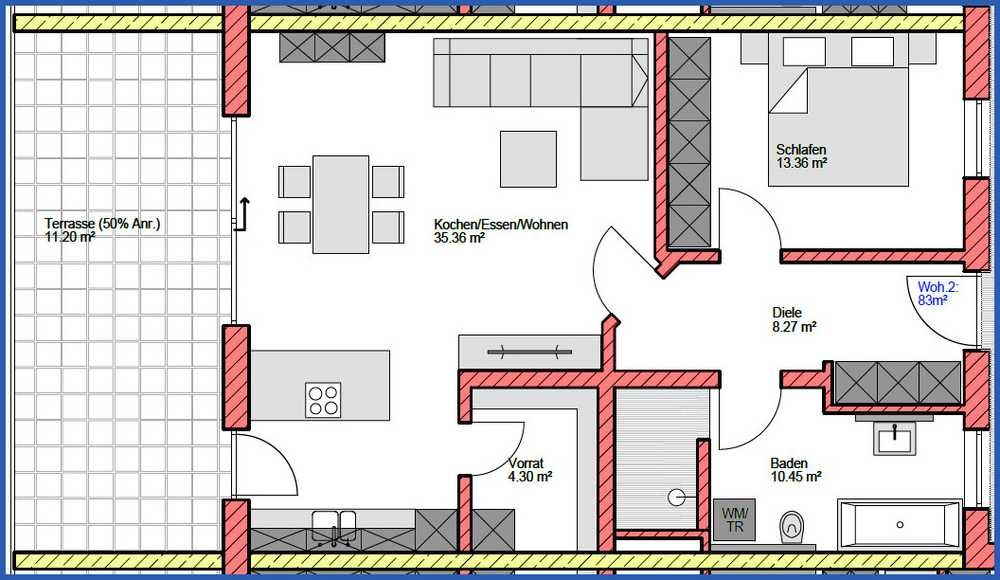 20 Wohneinheiten mit ca. 50 -134 m² sowie mit moderner, barrierefreier Gestaltung entstehen in den Obergeschossen.