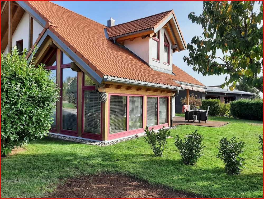 Das Gebäude wurde ca. im Jahr 2002 in Holzständerbauweise erstellt, verfügt über ca. 5,5 Zimmer/ca. 166m² Wohnfläche zuzüglich Nutzfläche und steht auf ca. 690m² Grundstück mit einer Doppelgarage. Bei der Erstellung wurde auf eine ökologische Bauweise und gute Raumproportion Wert gelegt. Der schönen Wohn- und Essbereich wird durch einen beheizten Wintergarten und einen Schwedenofen ergänzt und rundet das angenehme Ambiente und Raumgefühl innerhalb des Gebäudes ab. Die Beheizung und Warmwasserversorgung erfolgt über eine Gaszentralheizung (mit Flüssiggas). Die Gebühr für den Erd- Gastank beträgt ca. 144,-€ pro Jahr.