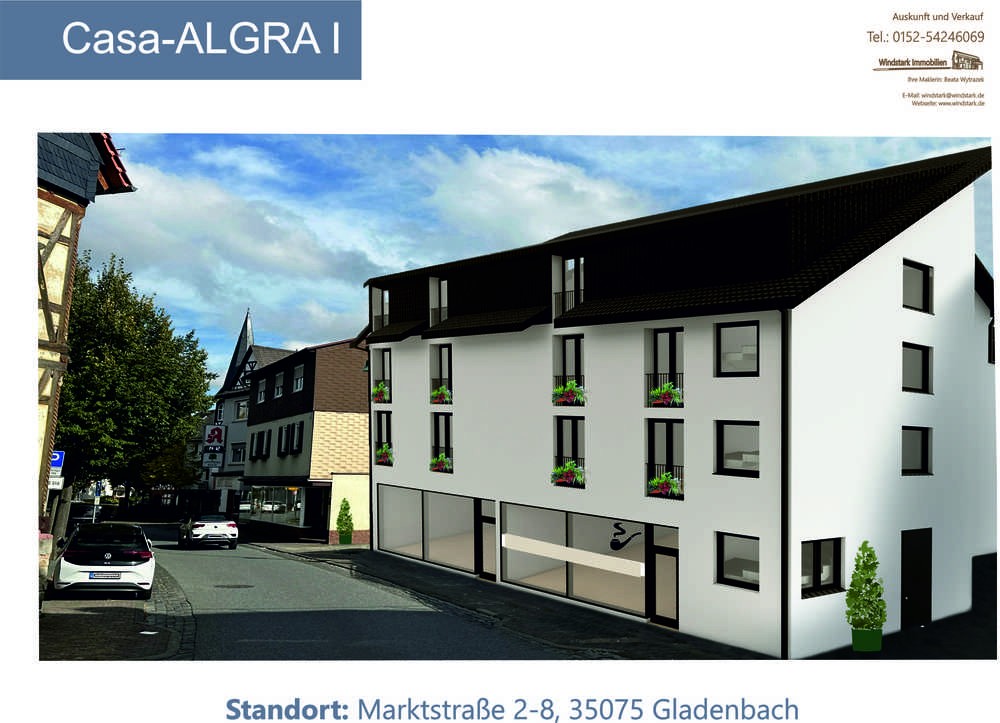 Projektübersicht: Ein hochmodernes Wohnprojekt in der begehrten Lage von Gladenbach. Dieses Projekt beinhaltet die Errichtung eines Mehrfamilienhauses mit 12 Wohneinheiten und zwei Gewerbeeinheiten, umgeben von einer ansprechend gestalteten Gartenanlage und ausreichend Parkmöglichkeiten.