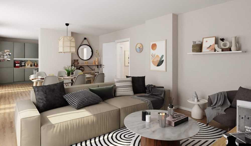 Vom Eingangsbereich gelangen Sie direkt in das großzügige Wohnzimmer, welches durch bodentiefe Fenster viel Tageslicht bietet. Die offene Wohnküche lädt zum gemeinsamen Kochen und Verweilen ein. Vom offenen Wohnbereich gelangen Sie direkt auf die große Dachterrasse. Genießen Sie den Ausblick und lassen Sie den Alltag hinter sich. Zwei gemütliche Schlafzimmer bieten ausreichend Platz für Ihre Möbel und persönlichen Gegenstände. Das Badezimmer begeistert mit Tageslicht, das eine natürliche Atmosphäre schafft. Die moderne Fußbodenheizung sorgt für angenehme Wärme an kalten Tagen. Mehr Platz für Ihre Sachen bietet ein Abstellraum und ein eigener Keller, der bequem mit dem Aufzug zu erreichen ist.
