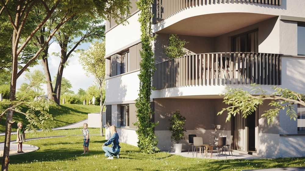 Es entstehen zwei Wohngebäude mit 12 und 9 Wohneinheiten. Jede Wohnung verfügt über einen privaten Garten, eine überdachte Loggia oder eine traumhafte Dachterrasse – charmant und lebensbereichernd. Die ansprechende Architektur gipfelt in begrünten Fassaden und Pergolen. Moderne Schiebeläden dienen der Verschattung und gestalten die Fassade spielerisch durch deren flexible Positionierung.