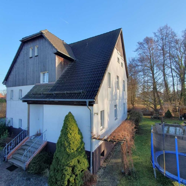 Mit Erwerb 1995 erfolgte durch den jetzigen Eigentümer im Folgejahr die komplette Sanierung der freistehenden Immobilie mit drei hellen Wohneinheiten. 1997 entstand die Carportanlage mit drei Stellplätzen, einen Fahrradraum und ein Mülltonnenplatz.