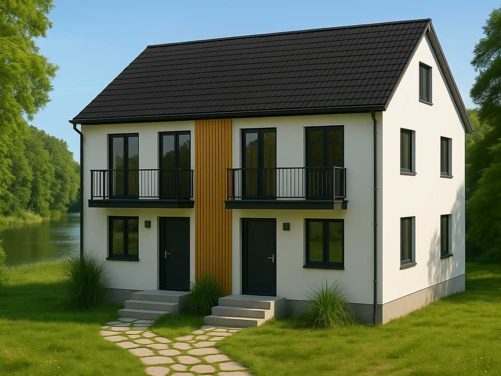 Geplant ist der Bau eines modernen Einfamilienhauses in Doppelhausform, bei dem beide Einheiten als eigenständige Gebäude mit separaten Außenmauern und eigenem Dach realisiert werden. Diese Bauweise bietet maximale Privatsphäre, optimiert die Grundstücksnutzung und ermöglicht großzügige Gartenflächen.