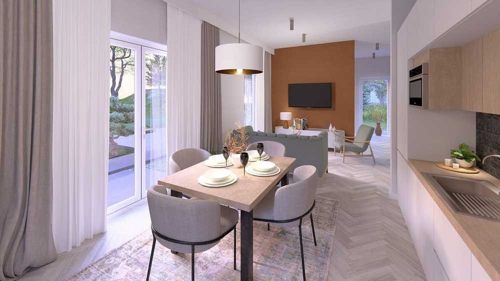 Unser Tiny Single Bungalow 2 ist ideal für Singles oder Paare, die stilvoll auf kleinem Raum leben möchten. Der offene Wohn-Koch-Ess-Bereich mit etwa 25 m² ist großzügig gestaltet und lädt zu gemütlichen Abenden ein. Direkt daneben befindet sich ein komfortables Schlafzimmer mit einer praktischen Ankleide, die viel Stauraum bietet und so für ein harmonisches Wohngefühl sorgt. Das moderne Badezimmer mit Dusche vereint Funktionalität und Stil, während ein Hauswirtschaftsraum zusätzlichen Platz für Haushaltsgeräte bietet. Dieser Bungalow kombiniert effiziente Raumnutzung mit einem hohen Maß an Wohnkomfort, perfekt für modernes Wohnen auf kleinem Raum.