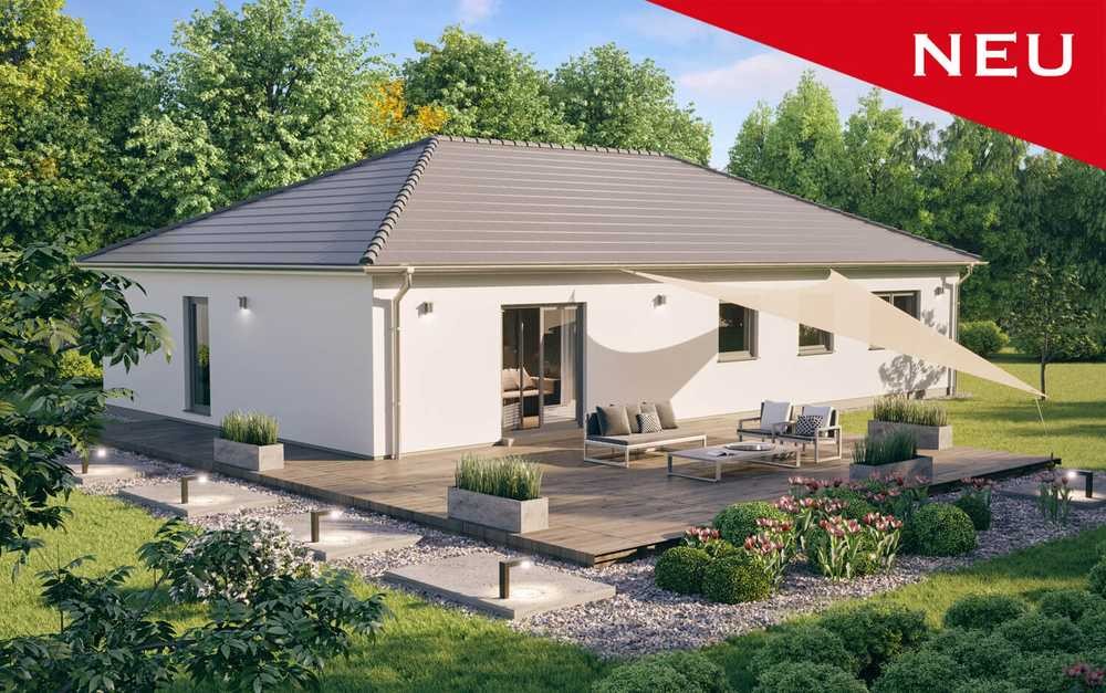 Mit 5 Zimmern auf 128 m.q. eignet sich dieser Bungalow Typ SH 128 B schon für eine große Familie. Der lange Flur, welcher alle Räume miteinander verbringet, geht in offenen Bereich Wohnen, Essen und Kochen mit 44q.m. Wohn und Nutzfläche über. Drei weitere Zimmer, nahezu gleich groß, können je nach Lebenssituation von Kindern, Gästen und/oder als Arbeitszimmer genutzt werden. Ein Schlafzimmer, ein Vollbad sowie das beliebte Gästebad vervollständigen diese Grundrisslösung.