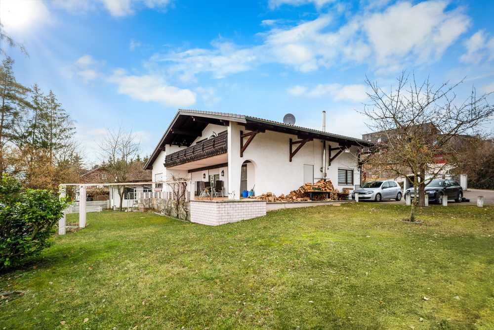 Es befindet sich in einer ruhigen Anwohnerstraße in einem gewachsenen Wohngebiet mit einer Grundstücksfläche von insgesamt 978m². Zwei Garagen und mehrere Stellplätze sind vorhanden. Durch Die Höhenlage haben Sie einen wunderbaren freien Blick von der Terrasse und den Balkonen.