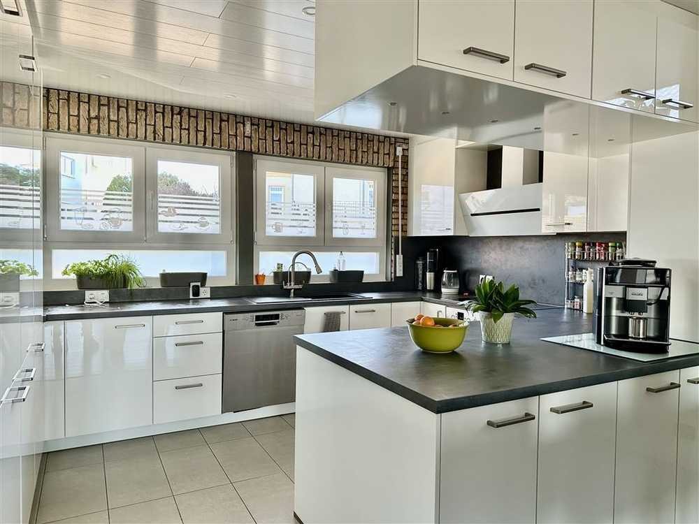Highlight des Hauses ist der offen gehaltene Erdgeschoss-Bereich mit tollem Ausblick von der Küche bis über Sindelfingen. Von hier aus gelangt man auch auf den großzügigen Balkon, welcher durch Aussicht und Grünflächen hinter dem Haus zum Entspannen an warmen Sommerabenden einlädt.
